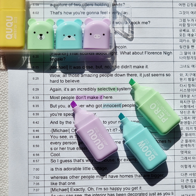 6가지 색상의 작고 깜찍한 형광펜